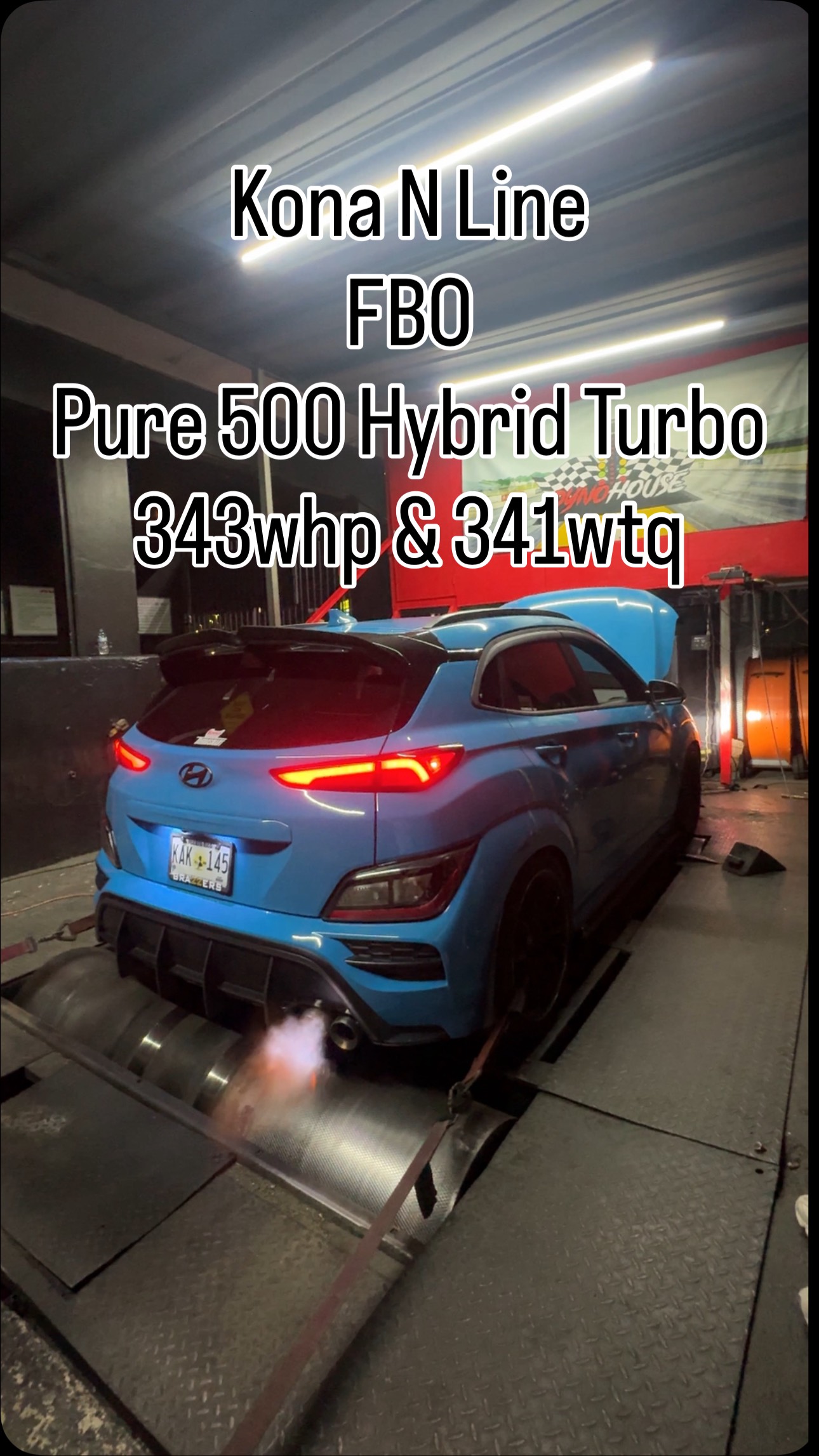 Kona N Line 343whp & 341wtq now running a Pure500 Hybrid Turbo -fwd -stock dct…