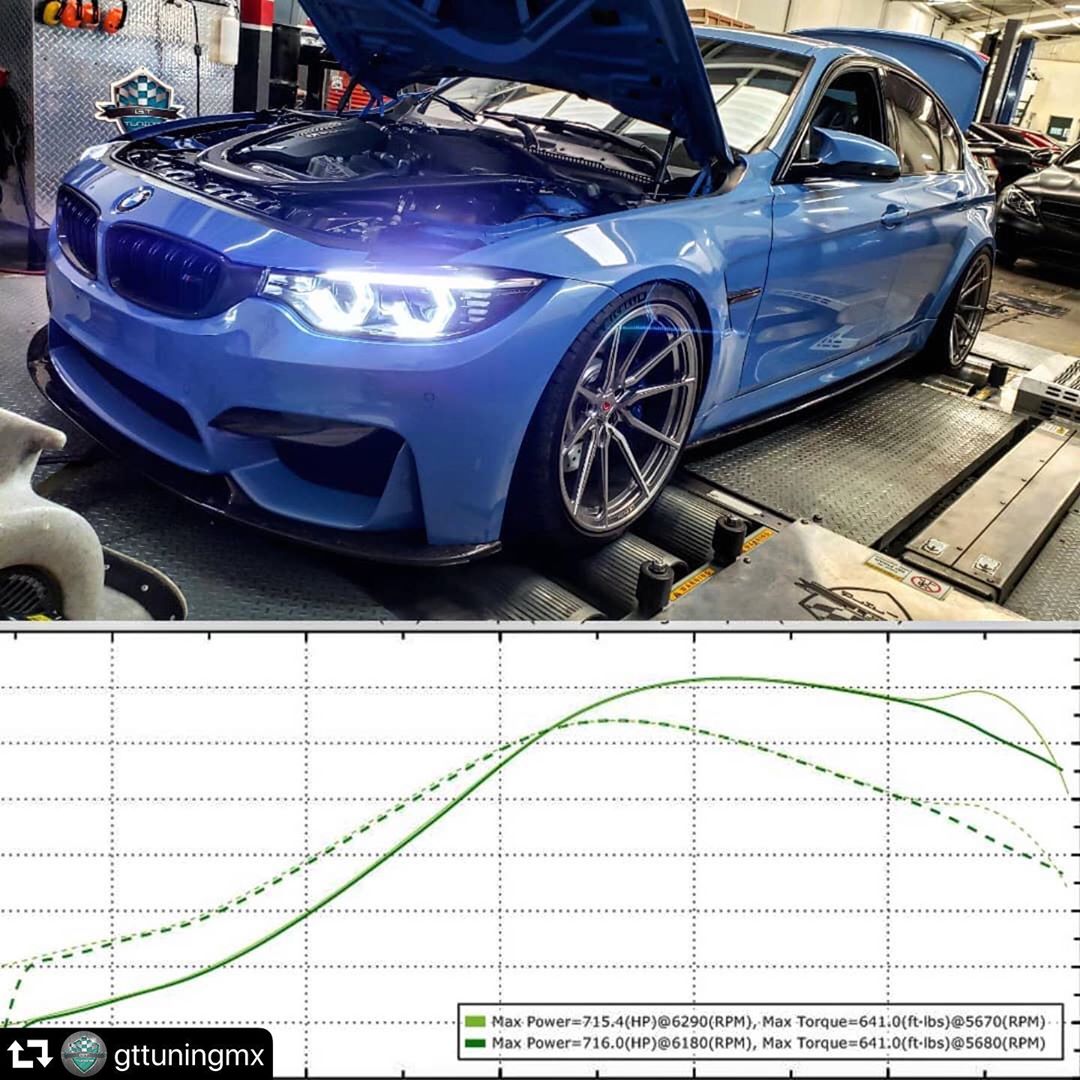 @gttuningmx laying down some good numbers on just pump gas and meth with a 5500ft DA! They made 716whp and 641wtq with our Pure Stage 2 High Flow S55 Turbos!