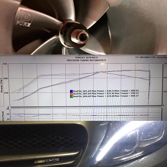 MB C63S M177 PURE Turbos Upgrade, dyno testing has started! Results from 93 pump gas testing: 630whp! No meth, just DP and exhaust! Next up, meth and some race gas! Let’s see what she can do! Thanks to @kevin_doesnt_lift and @precisiontuning 👍👏🚀