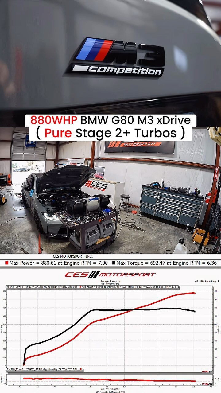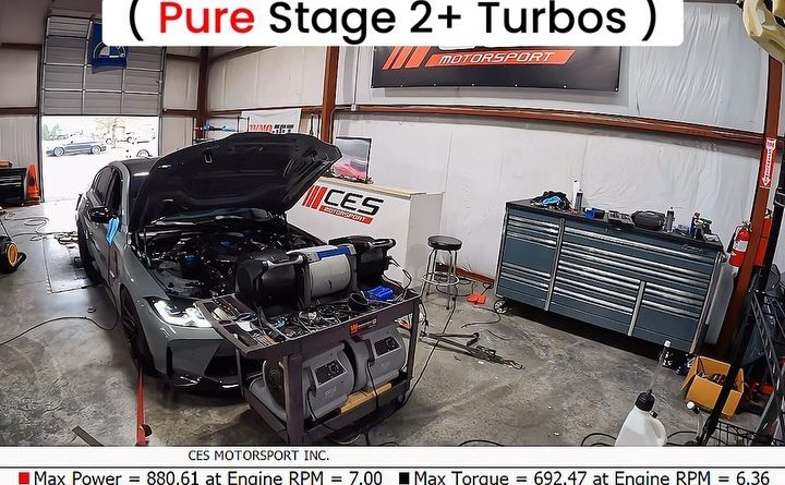 Our friends at @cesmotorsport took this customers 2023 “Jahre Edition” BMW G80 M3 Competition (xDrive) & equipped it with a set of our Pure Stage 2+ 🚀 Upgrades! Making this sedan a daily BEAST! Torque kept low for reliability purposes, but a nice and straight curve to keep it going throughout the RPM! Although these upgrades have proven to achieve upwards of 1,000whp+ , this car is still a stock engine/stock transmission build. Are these new S58’s a cheat code? 📟