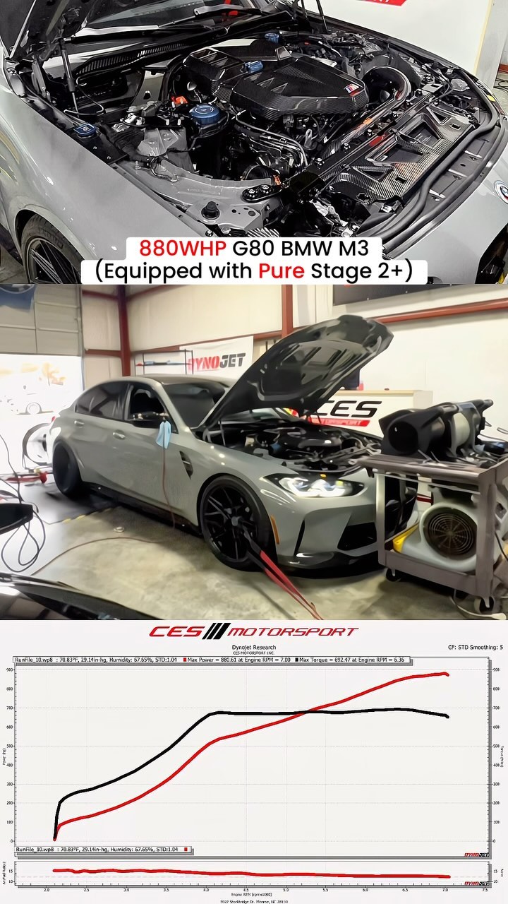 Our friends @cesmotorsport took this 23’ G80 BMW M3 “Jahre Edition” and equipped it with a set of our S58 Pure Stage 2+ 🚀 Upgrade! Tuned By: @f80paul / @g80paul putting down some solid numbers on this stock motor, stock transmission, xDrive Beast‼️