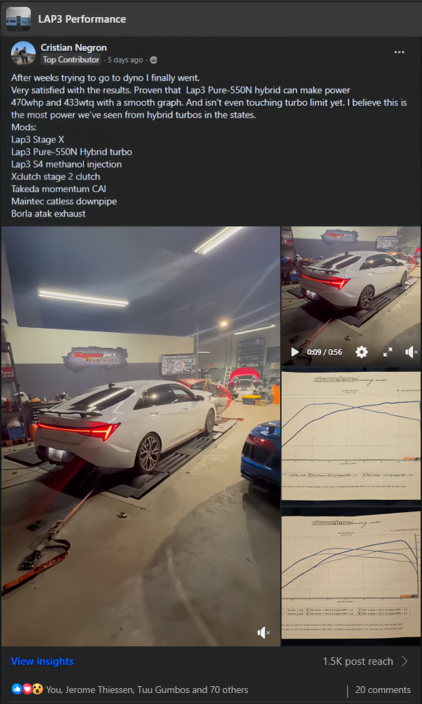 Browse through customer-submitted results, whether it’s 1/4 times, dragy runs, or dyno sheets, showing how our turbos transform vehicles across different setups.