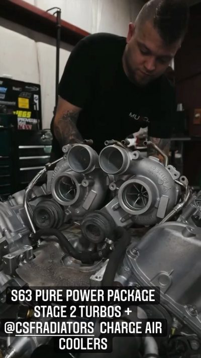 @munich_motorsports getting busy installing a Stage 2 CarBahn s63 engine, Pure stage 2 turbos, Eventuri intakes, and CSF Intercoolers. #purestage2 #pureturbos #pureturbofamily #pure900 #f10m5 #munichmotorsports #eventuri #pureturbos #csfradiators #carbahnautoworks #ct #liquimoly #bimmerworld...