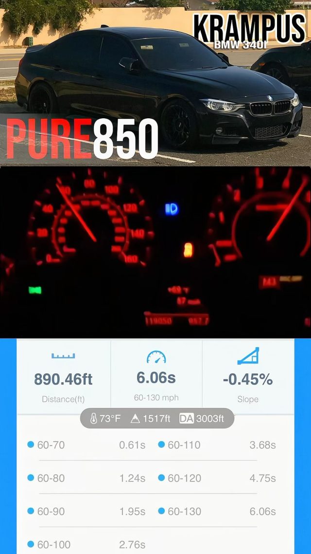 @krampusf30 Stock Engine/Stock Transmission 340i (Gen 1) B58 equipped with our New Pure850 consisting of an OEM design aftermarket housing putting in work!🚀 ⏱️ 6.06s (60-130mph) [ Mods/Build Details: ] @pureturbos New Pure850 ctsturbo Intake @_fuel_it_ Stage 2 HPFP Stock...