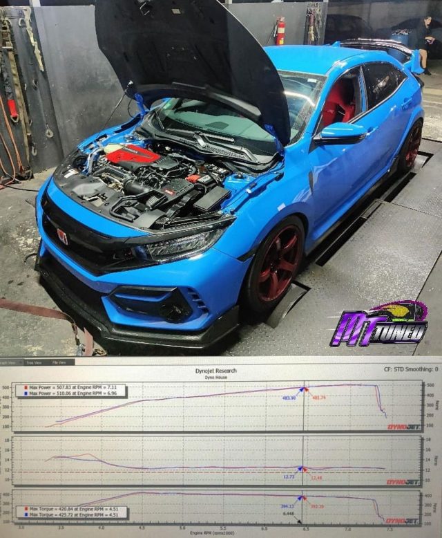 @manolitotech did a few new updates to @my_boostblue_fk8 and made 548hp & 441tq on 100oct gas Then to the track, running 11.48 & 11.53 both on 126.8mph 2 passes to test in all night.. still a lot...
