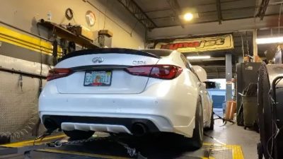 Pure Turbos Q50 Q60 VR30 finally on the awd dyno! 574whp, 21psi, E30 blend fuel…