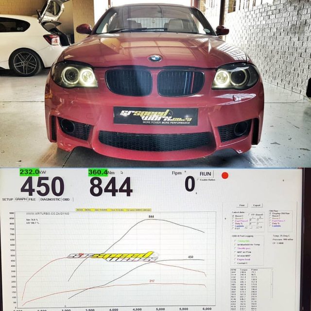 @srspeedworx back at it again #BoostedByPure 💪🏻💪🏻 450wkw (611whp) & 844Nm at 1400m above sea level. That's a mountain of an increase of 232wkw and 360Nm BMW N54 135i Manual loaded with - Pureturbos Stage 2 Hi-flow Hybrid...