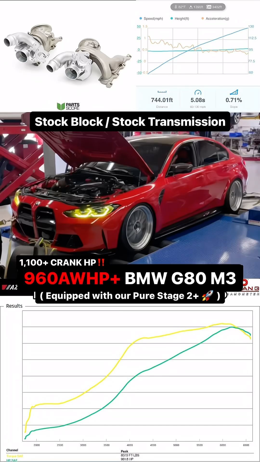 Thanks to our friends @partsscore , They have managed to make an absolute beast out of this 2022 BMW G80 M3š Equipped with a set of our Pure Stage 2+ upgrades they managed to make over 1,100HP (960AWHP+) with Stock Motor & Stock Transmissionā¼ļø Tuned By: @g80paul / @f80paul