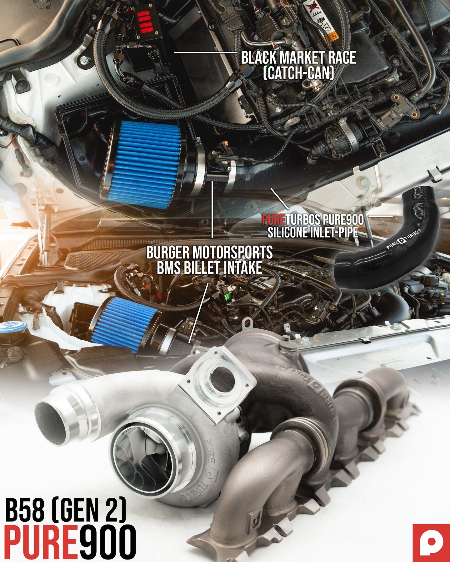 Pair your Pure900 Today with the @blackmarketrace Catch-Can & @burger_tuning Intake for the most optimal performance! Officially Tested ✅